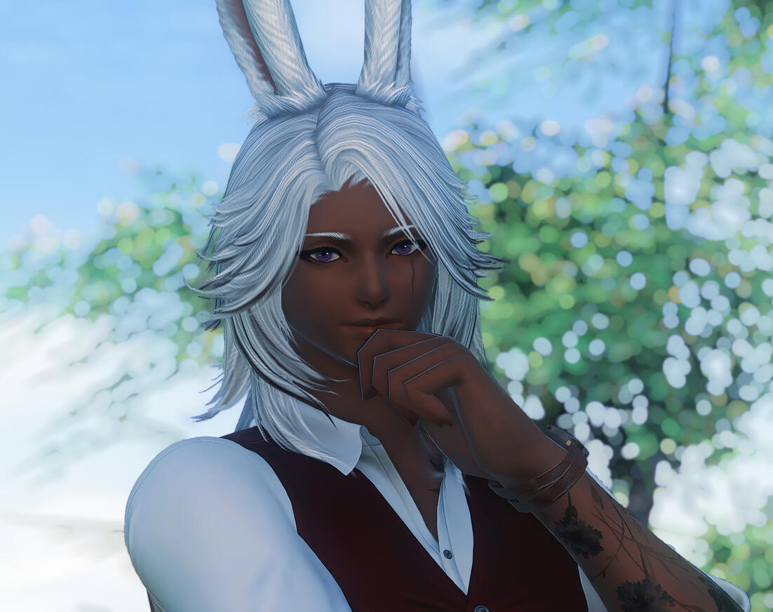 PERSONALITY. Renwin is an easy-going, carefree Ravan who spends much of his time studying ancient texts ranging from Mhach to Allag to Yafaemi. He has a generally kind-hearted demeanor that many can't help but feel compelled to wish to gravitate towards. And yet there is something just beneath the surface that touches on mysterious and captivating all at once. Curious. BACKGROUND. Renwin was born in Golmore to a loving mother, Brynda, and an unknown father. Even from a very young age, the Garleans occupying his mother's village took interest in his prowess with aether; threatening to steal away with Brynda's child and do experiments on him to better their research into fighting against Eorzeans across the sea.Brynda refused to surrender her only son to the Garleans. She wove a glamour over Renwin, changing him from a Viera to an Elezen to hopefully fool the Garleans, and set out along with Renwin's father to steal a Garlean boat and ferry them both to safety in Eorzea. They made it far until a Garlean airship saw them and destroyed the vessel, killing both of Renwin's parents and casting him out the sea on the ship's wreckage. Perhaps protected by the Navigator, Renwin was discovered on the shore of Aloalo Island, where a kind Lalafellan family took him in and raised him.He spent much of his formative years on Aloalo, learning about arcanima and polishing the many jewels mined from deposits on the island. But Renwin always felt that the forests there were where he belonged. Until one day they weren't enough and he stole away on a ship to Eorzea against the wishes of the village's elder. The elder bestowed a curse upon Renwin and, sure enough, a terrible storm wrecked the ship he was on. He woke up on the shores of the Silver Bazaar.In a world he was entirely unfamiliar with, Renwin hitched a ride on a chocobo cart and the rest, as they say, was history.